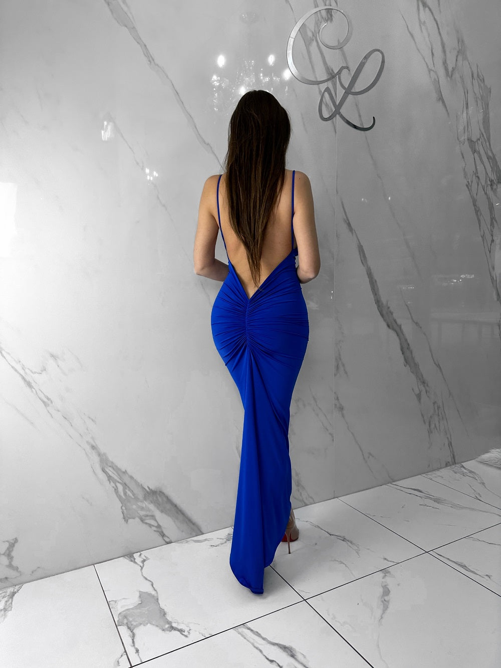 Own the spotlight with the 'It Girl' maxi dress in royal blue, designed for those who dare to stand out. This dress boasts a seductive low back with scrunch bum detail, enhancing your curves. Its plunging neckline and chic double lined fabric make it a gorgeous fit, perfect for exclusive events where making an unforgettable impression is a must.